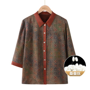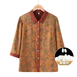奶奶香云纱衬衫高档桑蚕丝中老年人秋装女妈妈真丝衣服杭州丝绸
