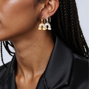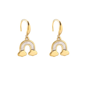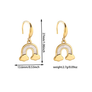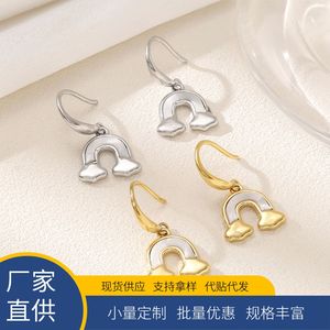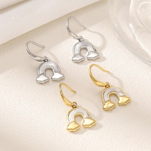 耳坠式耳环女士潮流钛钢彩虹简约不锈钢挂坠耳环
