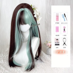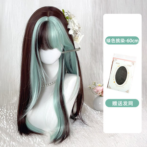 【薄荷甜巧】水舞沙假发女绿色挑染空气刘海长直发自然仿真全头套