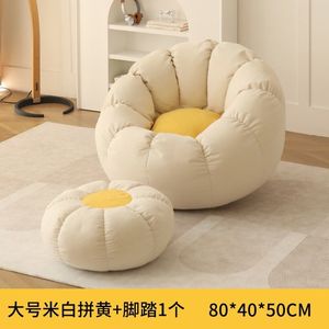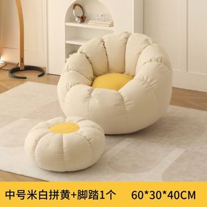 【米白拼黄色】单人位-中号+1脚踏+雪花绒