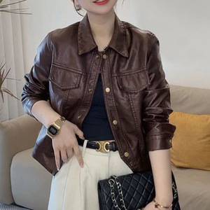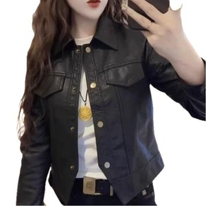 复古上衣翻领港风秋冬新款皮衣女夹克外套黑色其他