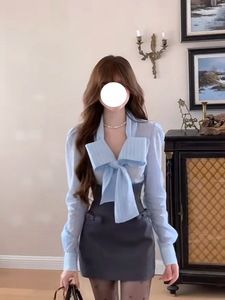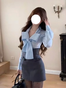 蝴蝶结条纹衬衫JK制服两件套女秋季新款美式学院风纯欲甜辣裙套装