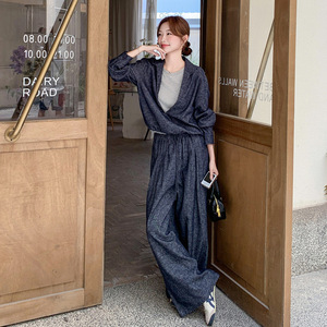韩系慵懒松弛感假两件卫衣套装女2025秋新款宽松休闲阔腿裤两件套
