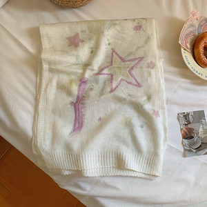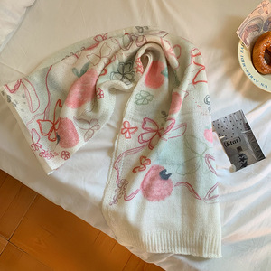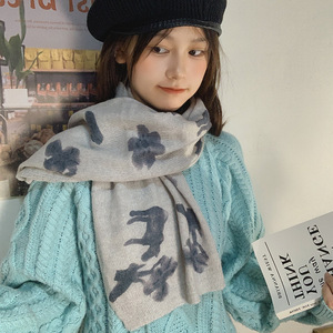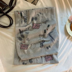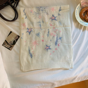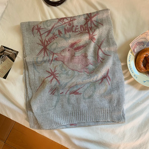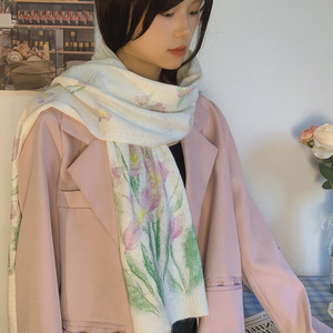 网红手绘插画原创水彩画马海毛混纺薄款印花围巾搭配围脖丝巾秋冬