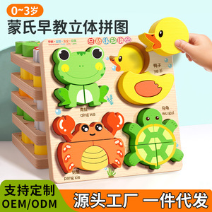 工厂直销儿童立体拼图板木质蒙氏早教益智配对板积木宝宝现货代发