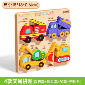 4款交通拼图【消防车+翻斗车+吊车+挖掘机】