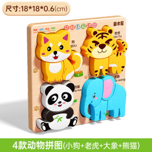 4种动物拼图B款【小狗+老虎+熊猫+大象】