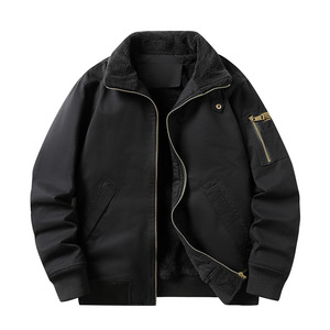跨境爆款冬季加绒飞行员夹克外套男士加绒加厚大码棉衣翻领保暖衣