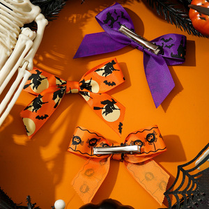 1件/2件/3件 万圣节蝴蝶结发夹 扫把女巫/蝙蝠印花蝴蝶结边夹适合