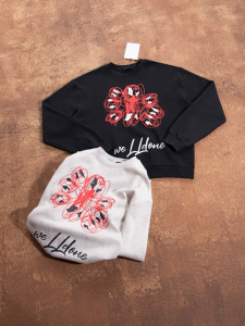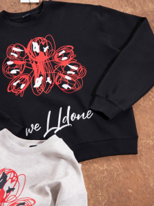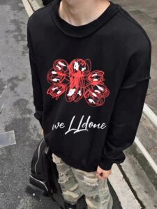 welldone海棠花涂鸦印花美式潮牌秋冬男女情侣同款宽松圆领卫衣