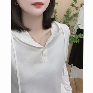 春季长袖连帽卫衣洋气时尚休闲百搭显瘦薄款纯色带帽T恤