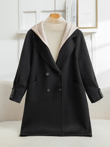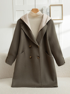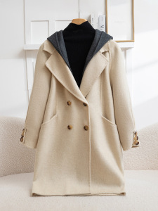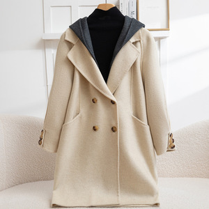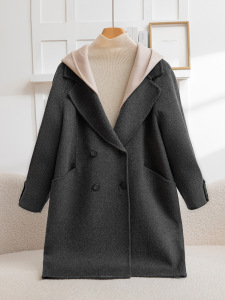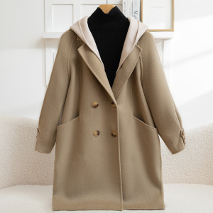 连帽潮流亲肤毛呢外套纯羊毛韩版风羊大衣女中长款双面无压呢宽松