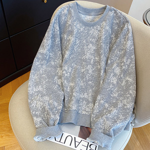 高级感雪花灰圆领套头卫衣女2025早秋宽松休闲百搭春秋款长袖上衣