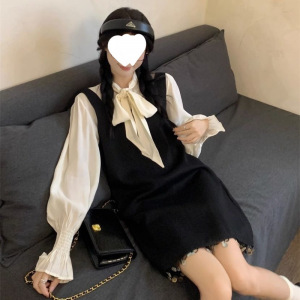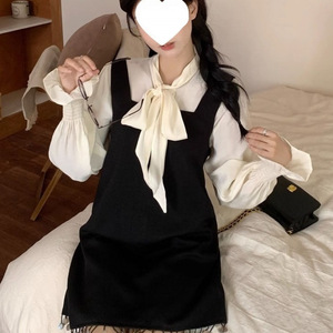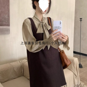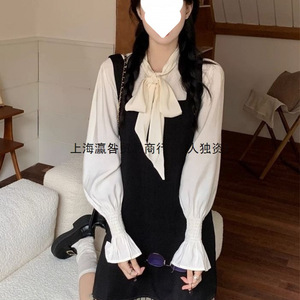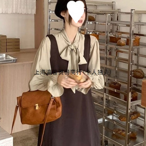 秋秋新款女装套装法式复古学院苏背带连衣短裙内搭衬衫两件套