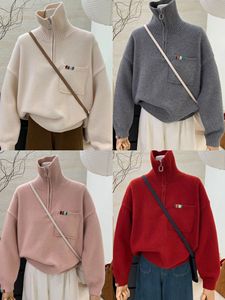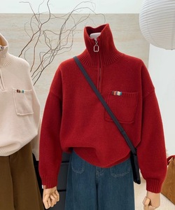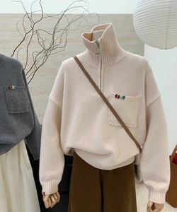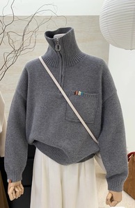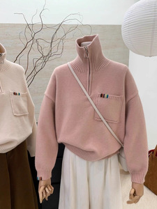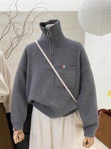 2025秋冬新款拉链半高领厚打底衫宽松休闲套头针织保暖毛衣女
