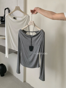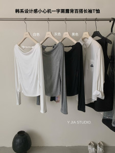Y. JIA伊嘉秋季韩系辣妹设计感露背百搭显瘦一字肩长袖T恤女5713