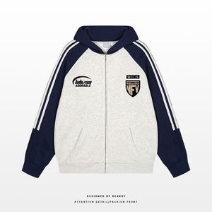 hiphop欧美原创字母印花开衫连帽卫衣男休闲百搭拼接拉链外套ins