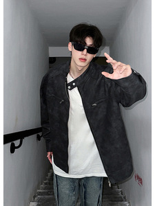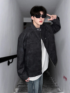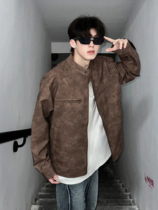美式棕色皮衣外套男2025新品高级感飞行夹克时尚宽松百搭外套男装