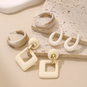 跨境爆款亚克力耳环套装烤漆欧美热卖耳饰女士夸张糖果色方形耳环