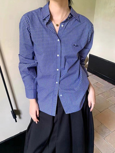 正确版本MIU家格子长袖衬衫外套上衣复古慵懒风休闲显瘦格纹衬衣