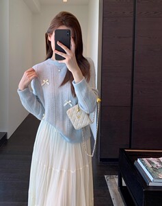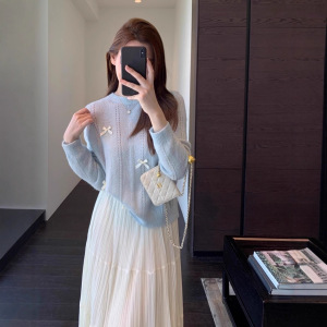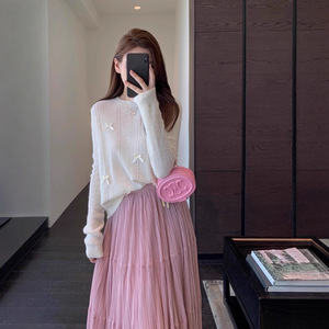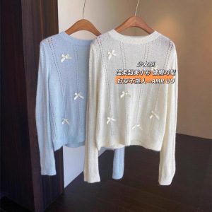 EU828温柔甜美 少女蝴蝶结针织衫慵懒显瘦套头毛衣女秋冬新款
