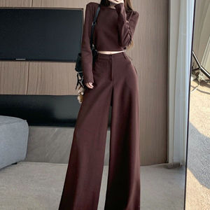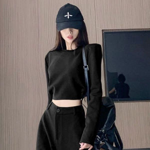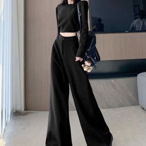 休闲套装辣妹抽绳修身长袖T恤上衣女秋季穿搭阔腿拖地长裤两件套