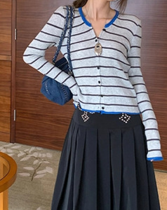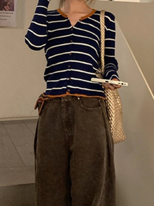 韩系设计感小众温柔撞色条纹针织衫女早秋修身短款气质开衫上衣