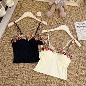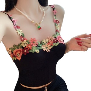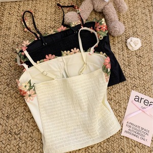 5574冰丝刺绣花花吊带美背固定胸垫甜辣雏菊小背心设计感辣妹上衣