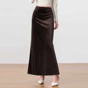 醋酸丝绒气质优雅包臀半身裙女2025秋季新款侧开叉高腰显瘦鱼尾裙