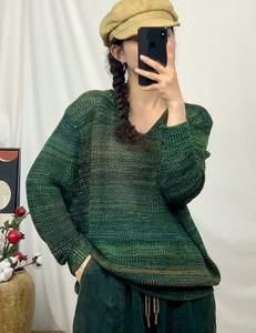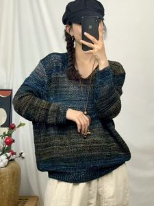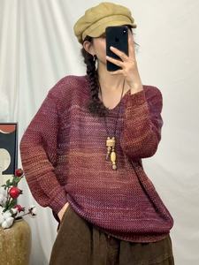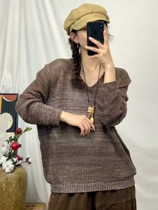 V领长袖针织衫女 2025秋 复古文艺宽松慵懒显瘦减龄遮肉休闲毛衣