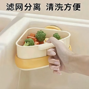 吸盘式三角水槽沥水篮家用厨房水果洗菜盆简易篮分离沥干塑料用具