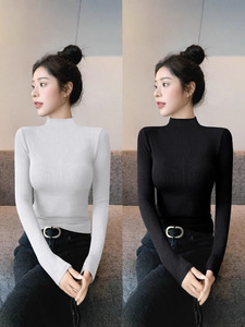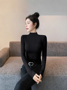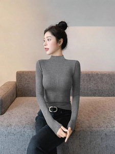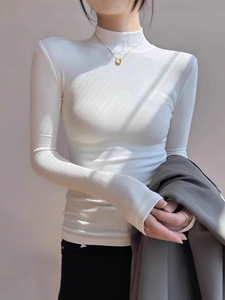 2025年秋冬新款紧身半高领长袖洋气t恤女打底衫内搭加绒中领上衣