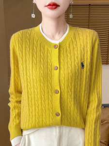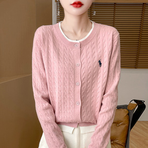 奢缇家2025年秋款小麻花针织衫纽扣圆领气质假两件针织开衫女毛衣