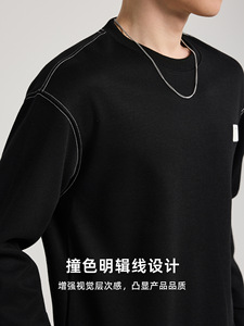 墨麦客男装章仔绣花卫衣男2025秋新款250克珠地棉男士卫衣55786.