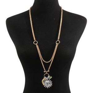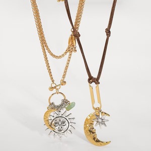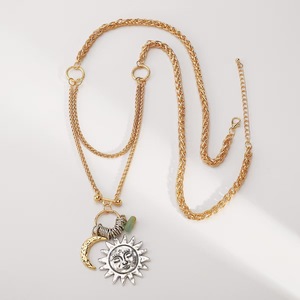 几何形太阳月亮形状多层吊坠合金轻奢简约高端项链小众高级感饰品