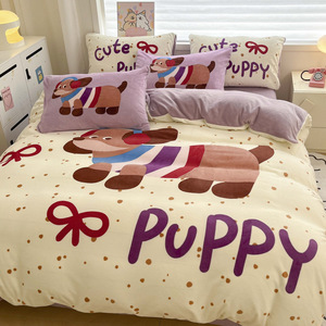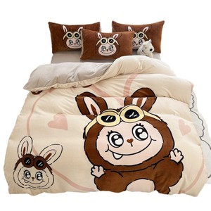 可爱大版卡通秋冬保暖牛奶绒四件套拉布布防静电法兰绒被套不掉毛