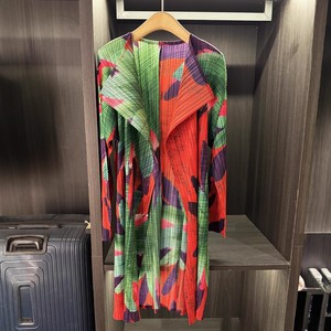 高端小众设计撞色印花褶皱西装领风衣秋季新款气质休闲中长款外套