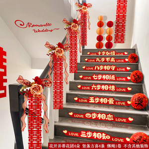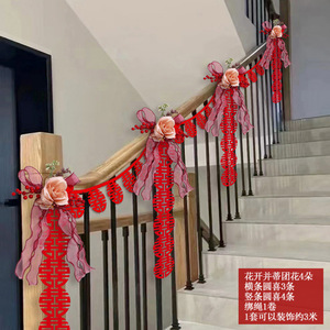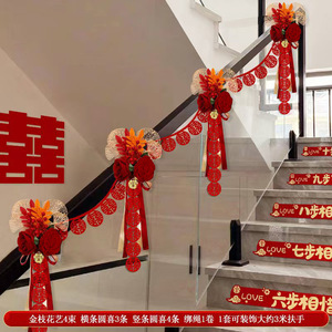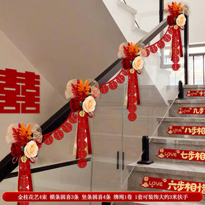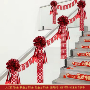 结婚楼梯扶手装饰婚房布置套装婚礼女方拉花扶梯婚庆挂件用品大全
