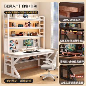 【二层书架洞洞板款】白色+白架(约30MM实木超厚桌面)