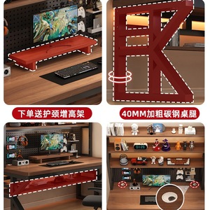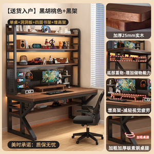 实木书桌书架一体桌带洞洞板简约卧室电竞桌学生家用台式电脑桌子
