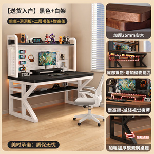 【二层书架洞洞板款】黑色+黑架(约30MM实木超厚桌面)