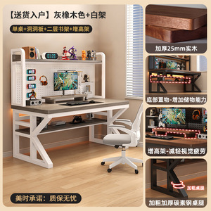 【二层书架洞洞板款】灰橡木色+白架(约30MM实木超厚桌面)