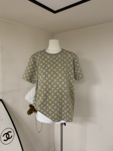 2025新款金色logo老花提花毛织针织休闲宽松短袖T恤