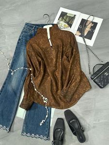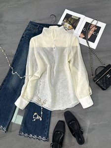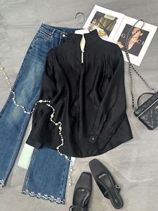 2025秋复古气质百搭天丝提花双层上衣穿季节性长双层不透衬衫长袖