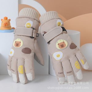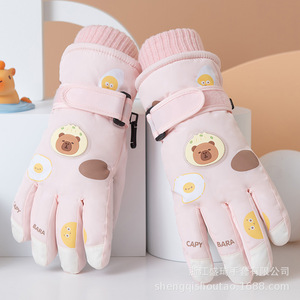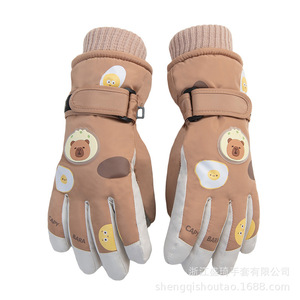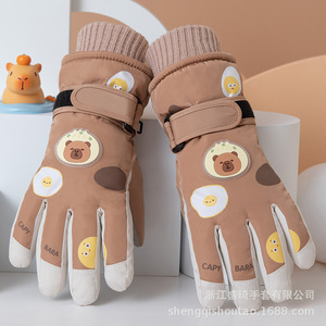 卡皮巴拉儿童滑雪手套学生户外骑车防风防滑加绒加厚防寒保暖可爱