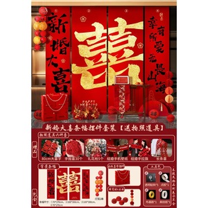 婚房布置套装结婚礼新房装饰挂布条幅喜字拉花卧室客厅拍照道具