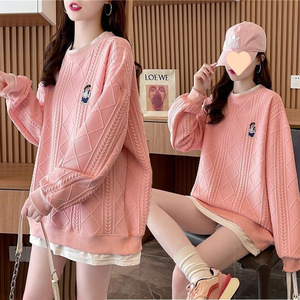 休闲加绒加厚女装卫衣上衣宽松韩版秋冬季新款韩版薄款假两件外套