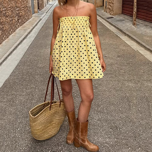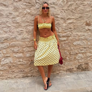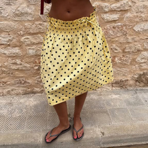 跨境欧美女装时尚休闲高腰波点打揽两穿蝴蝶结宽腰A字半裙中长裙