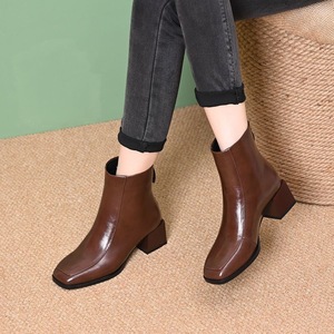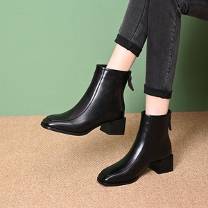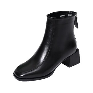 法式复古粗跟马丁靴拉链短靴2025新款秋冬单靴方头瘦瘦高跟棉靴女