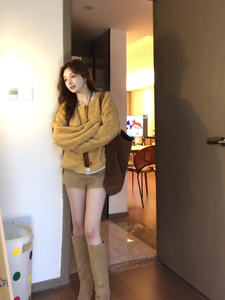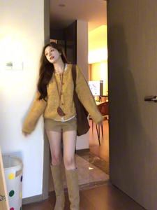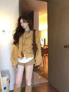 韩系黄色针织开衫毛衣外套女早秋冬季宽松慵懒外搭上衣氛围感穿搭